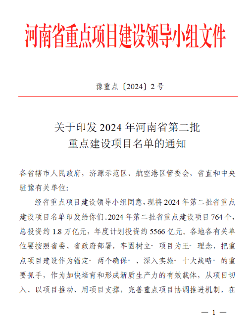 政策全文點(diǎn)擊鏈接:《關(guān)于印發(fā)2024年河南省第二批重點(diǎn)建設項目名單的通知》